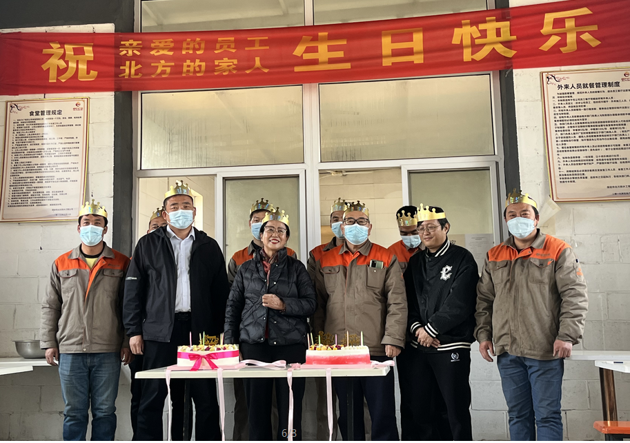 公司食堂準(zhǔn)備了豐盛可口的飯菜,公司準(zhǔn)備了生日蛋糕,董事長(zhǎng)發(fā)表講話,并為過(guò)生日的同志送上生日祝福,公司員工聚在一起唱生日歌,分享生日蛋糕。大家都覺(jué)得十分幸福,因?yàn)槲覀兪窍嘤H相愛(ài)一家人。